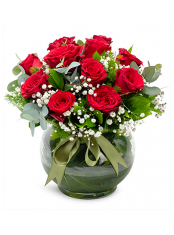 Cam fanusta 11 adet kırmızı gül ile hazırlanmıştır.