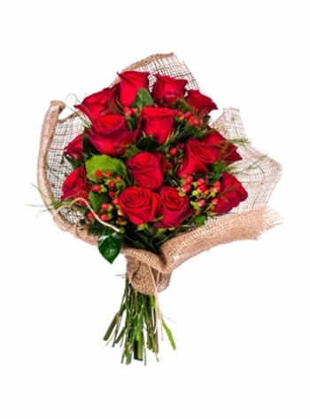 14 Adet Kırmızı Gül ve garnitürlerden hazırlanmıştır.