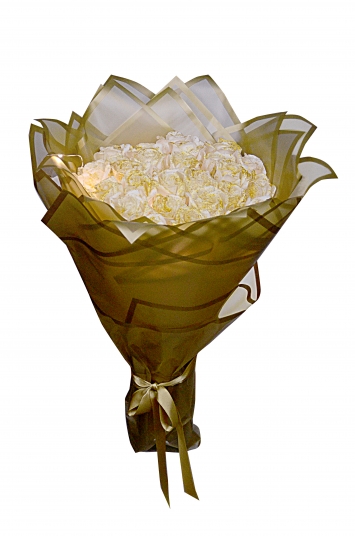 Yapay ışıltılı simli beyz gül buketi 30 'lu